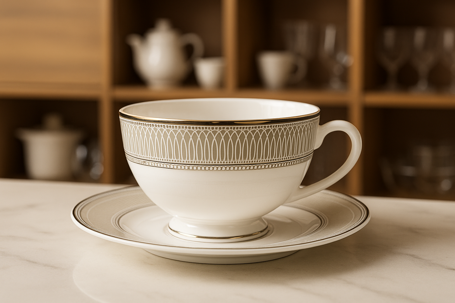 Luxury Porcelain Tea Cup & Saucer Set with Platinum Detailing – Elegant Bone China for High Tea, Gifting & Formal Dining